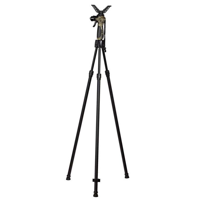 AKAH Quick Stick driepoot statief #68182000. Met slechts één hand en het overhalen van een hendel stel je de Quick Stick in op de door jou gewenste hoogte. Handige in hoogte verstelbare steun voor de jacht of vogelaar. Ook geschikt voor optische uitrusting. 360 ° draaibaar, zachte V-juk voor een stabiele ligging van het geweer. Verwijderbaar opleggedeelte voor het eventueel plaatsen van een camera of optische kijkers.