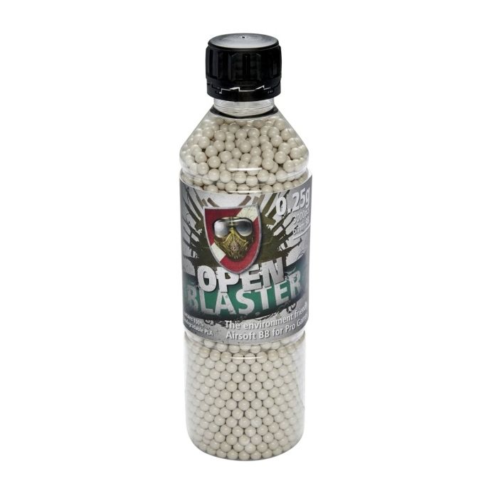 Open Blaster Airsoft BB's 6 mm 0.25 gram, per 3000 stuks verpakt in fles. Milieuvriendelijke 6 mm Airsoft BB's voor Pro Games. Hoge kwaliteit biologisch afbreekbare BB's. De ASG Airsoft BB's Open Blaster met een gewicht van 0,25 gram zijn extreem nauwkeurig omdat deze slechts een onderlinge afwijking hebben van slechts +/-0.01 mm. Deze BIO BB's zijn volledig biologisch afbreekbaar en goedgekeurd in Europa en de VS. Speciaal ontwikkeld voor de serieuze Airsoft schutter.