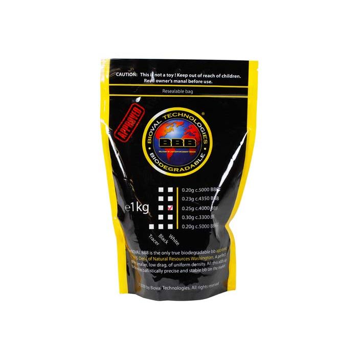 Bio munitie van het bedrijf Bioval Technologies zijn gegarandeerd 100% biologisch afbreekbaar. De 6 mm BB's hebben een zeer nauwkeurige gepolijste afwerking. De BB's van Bioval zijn als enige vrijgegeven in de Verenigde Staten door het ministerie van Department of Natural Resources, om te worden gebruikt in Airsoft Sport en training van militaire en wetshandhavingsinstanties. De BB's ondergaan uitgebreide kwaliteitscontroles en voldoen aan de EU-normen EN13432 (Europees Comité voor Normalisatie) en de ISO 3290-2001 G3 (International Organization for Standardization).