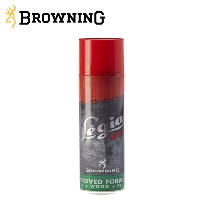 Browning Legia Spray 200 ml. Nieuwe formule voor compleet onderhoud van uw hagel- kogelgeweer of pistool. De nieuwe verbeterde formule reinigt en smeert niet alleen metalen onderdelen, maar is ook geschikt voor houten kolven en plastic onderdelen.