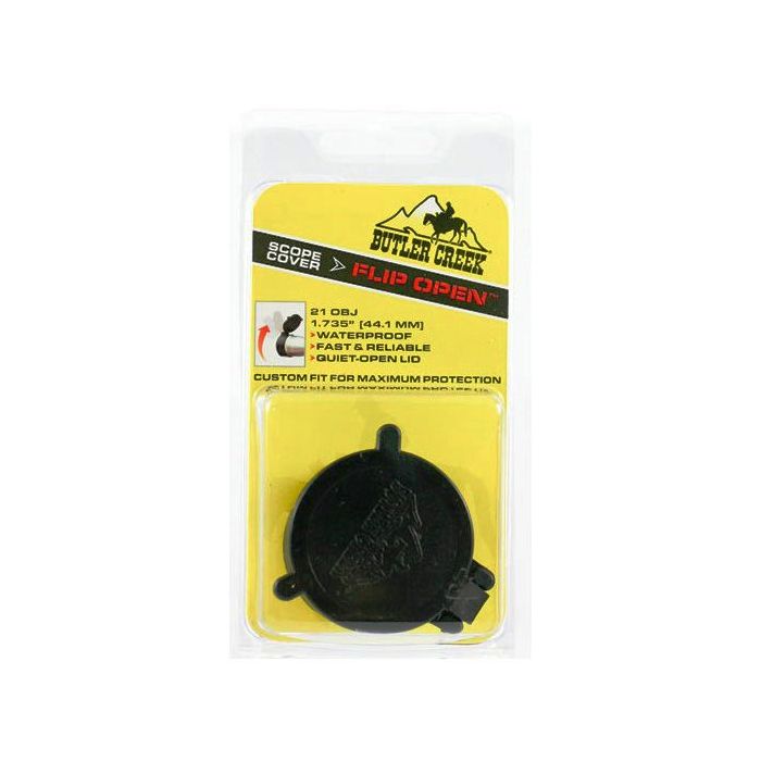 Butler Creek Flip-Up Scope Cover Objectief. De Flip-up beschermkappen van Butler Creek zijn de beste manier om uw richtkijker te beschermen tegen vocht, vuil en stof. Eenvoudig en snel te openen door een lichte aanraking met uw duim zodat men direct een schot kan plaatsen zonder uw oog van het doel te halen. Zeer stille veer-scharnier zodat het wild niet zal opschrikken van geluid. Met O-ring voorzien om stof en vocht buiten te houden. Tot -40°C getest. Licht van gewicht.