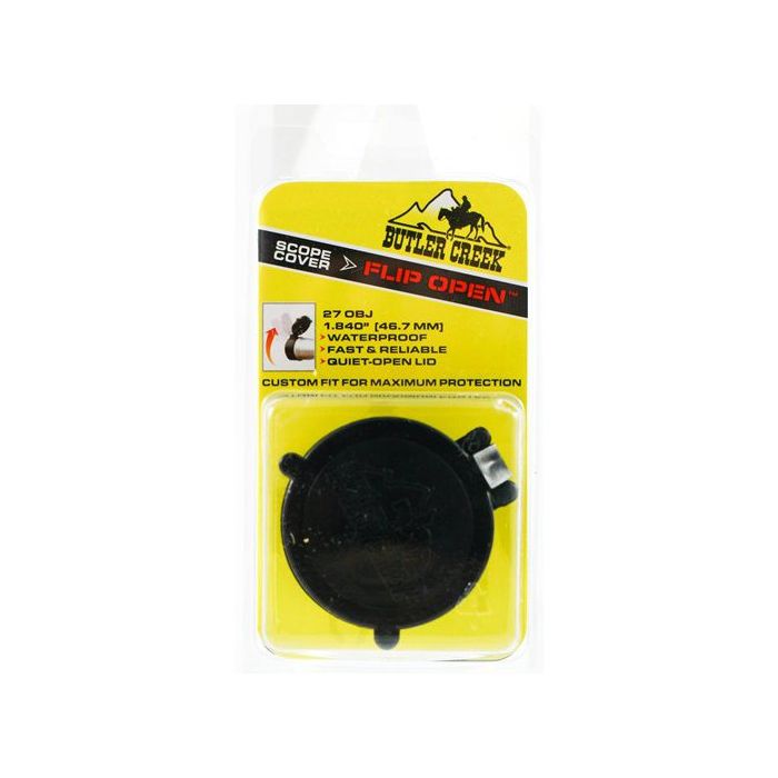 Butler Creek Flip Open Scope Cover Objectief. De Flip-up beschermkappen van Butler Creek zijn de beste manier om uw richtkijker te beschermen tegen vocht, vuil en stof. Eenvoudig en snel te openen door een lichte aanraking met uw duim zodat men direct een schot kan plaatsen zonder uw oog van het doel te halen. Zeer stille veer-scharnier zodat het wild niet zal opschrikken van geluid. Met O-ring voorzien om stof en vocht buiten te houden. Tot -40°C getest. Licht van gewicht.