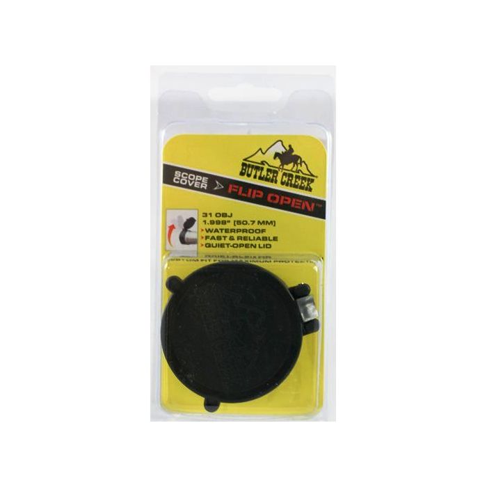 Butler Creek Flip-Up Scope Cover Objectief. De Flip-up beschermkappen van Butler Creek zijn de beste manier om uw richtkijker te beschermen tegen vocht, vuil en stof. Eenvoudig en snel te openen door een lichte aanraking met uw duim zodat men direct een schot kan plaatsen zonder uw oog van het doel te halen. Zeer stille veer-scharnier zodat het wild niet zal opschrikken van geluid. Met O-ring voorzien om stof en vocht buiten te houden. Tot -40°C getest. Licht van gewicht.