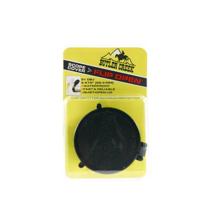Butler Creek Flip Open Scope Cover Objectief. De Flip-up beschermkappen van Butler Creek zijn de beste manier om uw richtkijker te beschermen tegen vocht, vuil en stof. Eenvoudig en snel te openen door een lichte aanraking met uw duim zodat men direct een schot kan plaatsen zonder uw oog van het doel te halen. Zeer stille veer-scharnier zodat het wild niet zal opschrikken van geluid. Met O-ring voorzien om stof en vocht buiten te houden. Tot -40°C getest. Licht van gewicht.