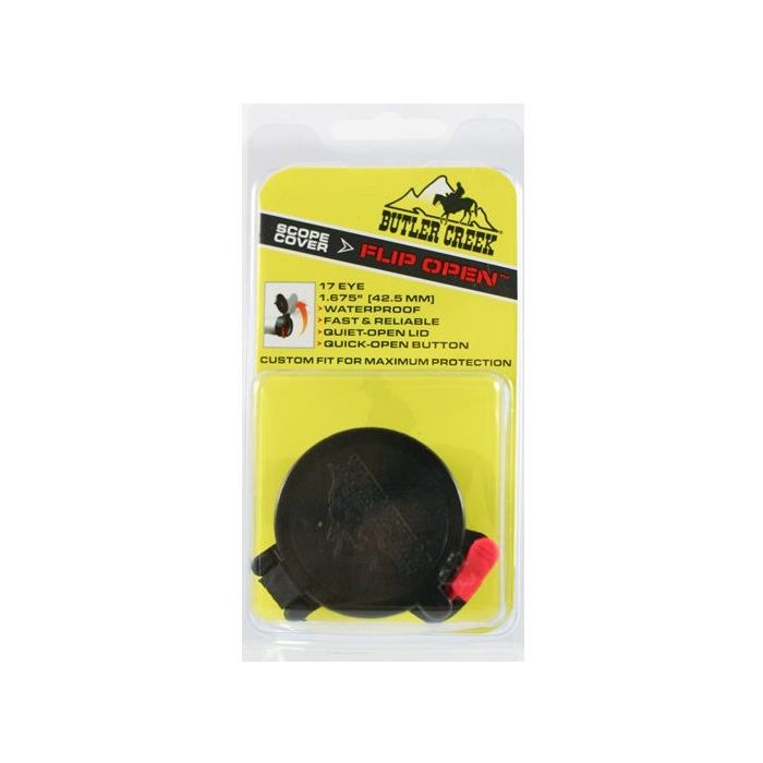 Butler Creek Flip-Up Scope Cover Eye (Oculair). De Flip-up beschermkappen van Butler Creek zijn de beste manier om uw richtkijker te beschermen tegen vocht, vuil en stof. Eenvoudig en snel te openen door een lichte aanraking met uw duim zodat men direct een schot kan plaatsen zonder uw oog van het doel te halen. Zeer stille veer-scharnier zodat het wild niet zal opschrikken van geluid. Met O-ring voorzien om stof en vocht buiten te houden. Tot -40°C getest. Licht van gewicht.