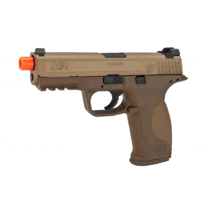 De semi-automatische S&W M&P9, GBB (Gas Blow Back) pistool is een duurzaam en realistisch uitziend Airsoft apparaat. Dit wapen is een onder licentie gemaakte replica van de S&W M&P9, 9 mm Parabellum pistool. De Airsoft versie heeft een metalen slede en polymeer kunststof frame met rail voor laser of lamp montage. Een 24 schots magazijn en een schot snelheid van circa 95 m/s (met 0.20 g BB's). Het semi automatisch repeteer systeem vuurt realistisch, waardoor u het gevoel krijgt van een echt vuurwapen. De verstelbare hop-up unit kan men fijn afstellen voor super nauwkeurigheid.