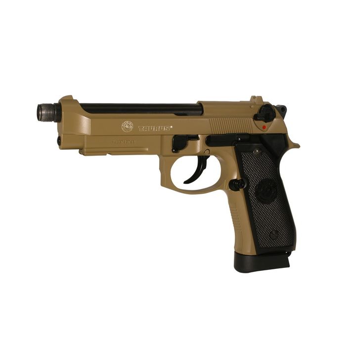 De semi-automatische Taurus PT92,C02 pistool is een duurzaam en realistisch uitziend Airsoft apparaat. Dit wapen is een onder licentie gemaakte replica van de Taurus PT92, 9 mm Parabellum pistool. De Airsoft sport versie heeft een volledig metalen behuizing, een 22 schots magazijn en een schot snelheid van 90 m/s (met 0.20 g BB's). Het repeteer systeem vuurt realistisch, waardoor u het gevoel krijgt van een echt vuurwapen. De verstelbare hop-up unit kan men fijn afstellen voor super nauwkeurigheid.