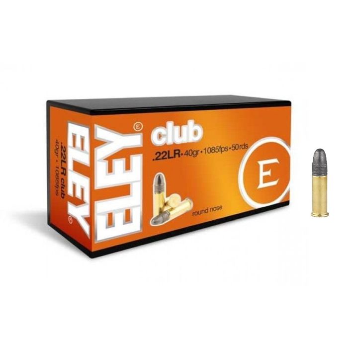 ELEY Club kleinkaliber kogelpatronen kaliber .22 long rifle, 40 grain round nose. ELEY Club met Eley's ronde kogelkop profiel. Nauwkeurig competitiemunitie met een goede prijs- prestatieverhouding. Betrouwbaar functioneren in zowel pistolen en geweren.