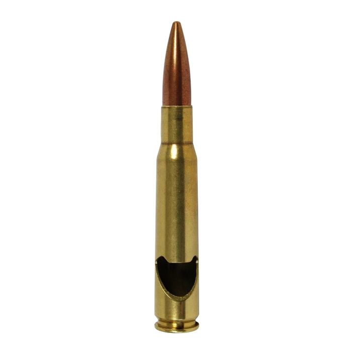 Deze ingenieuze flesopener is gemaakt van een echte .50 kaliber patroon. Een echte blikvanger. Ideaal als geschenk voor vrienden, jagers en sportschutters.