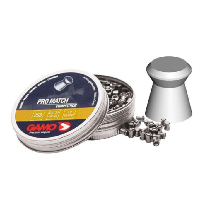 Gamo Pro Match competition 5,5mm, gladde wedstrijd kogeltjes met een platte kop voor de beste resultaten en hoogste precisie. Geschikt voor wedstrijd-luchtgeweren en lucht pistolen. Levering in hersluitbare schroef doos. Ook geschikt voor trommelmagazijnen in geweer of pistool. Ideaal voor het schieten van wedstrijden en universeel inzetbaar voor recreatief schieten op kaartjes en plinking.