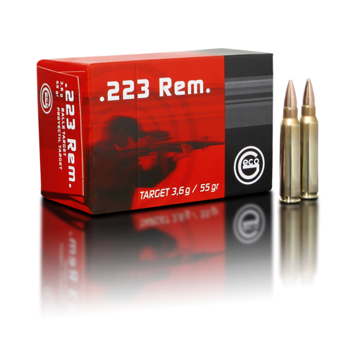 Geco .223 Remington Target Full Metal Jacket. De Geco .223 Rem. Target toont de beste prestaties bij het schieten met semi-automatische sport-geweren en kan heel goed gebruikt worden tot een afstand van 200 tot 300 meter. Ook zeer geschikt voor alle types grendelgeweren in kaliber .223 Rem. Verpakt per 50 stuks (5 strips a 10 stuks)