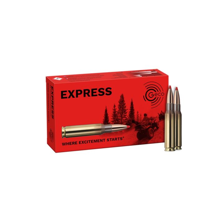 Geco jachtkogelpatronen kaliber .308 Winchester Express 165 Grain. Het nieuw ontwikkelde Geco Express Tip-projectiel geeft een zeer vlak traject, een hoge kogelsnelheid en een snelle interne ballistische energieoverdracht - alles gecombineerd in een uniek nieuw ontwerp voor een succesvolle jacht.
