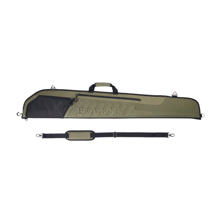 Browning geweerfoedraal Flex Nitro Shotgun in duotone kleuren groen en zwart. Deze prachtige en stevige geweertas voor hagelgeweren heeft voldoende ruimte voor hagelgeweer met 81 cm looplengte. Buitenmaten LxB 134x27 cm. Solide foedraal voor het veilig transporteren van uw geweer naar de schietbaan of jachtveld.