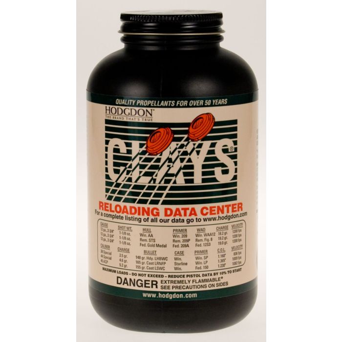 Hodgdon Clays werd in 1992 geïntroduceerd. Het werd een doorslaand succes binnen de kleiduiven wereld. Het brandt bijzonder schoon en is uitzonderlijk consistent. De goede verbrandingskenmerken van dit kruit staan garant voor een lichte terugslag en uitstekende patronen. De kalibers .45 ACP en .38 Special zijn nog maar twee kalibers waar Hodgdon Clays uitstekende resultaten mee geeft.