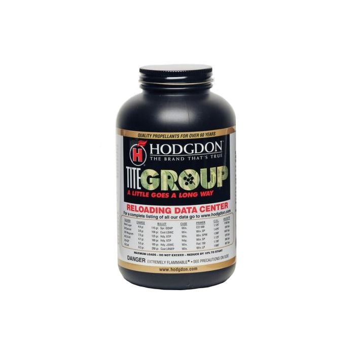 Hodgon Titegroup kruit voor het herladen van onder andere kaliber 9 mm Para, .38 Spec, .357 Mag, .40 S&W, 45 ACP en .45 Colt en vele andere (zie voor een volledig herlaadoverzicht op Hodgdon.com). Hodgdon Powder biedt de grootste selectie van kwalitatief hoogstaand rookloos kruit voor gebruik bij het herladen.