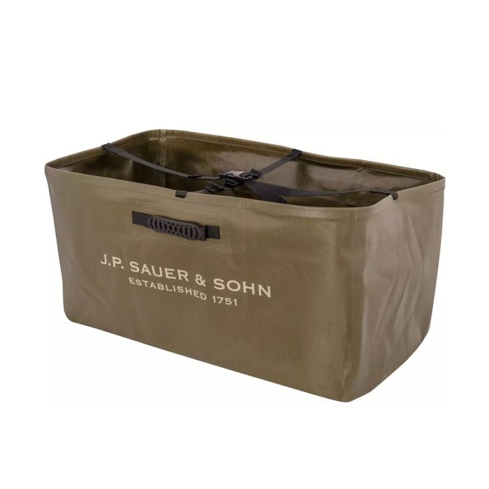 JP Sauer & Sohn opvouwbare wilddrager. Degelijk, extreem scheurvast en opvouwbare wilddrager in JP Sauer & Sohn-design. De drager is niet alleen ruimtebesparend op te bergen, maar door zijn lasnaden 100% waterdicht, bovendien gemakkelijk schoon te maken en extreem veerkrachtig. Door zijn inhoud van 140 liter is hij geschikt voor het vervoeren van geschoten wild. Capaciteit voor maximaal twee reeën of een kleiner wild zwijn.