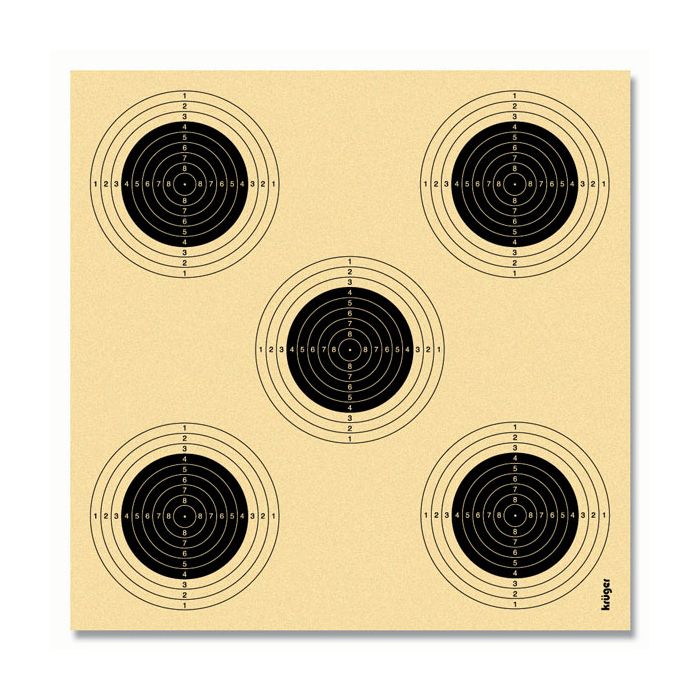 Kruger schietschijf luchtgeweer 10 meter 5 rozen #1305N. Kruger schietschijven zijn van een zeer hoge kwaliteit wat betreft papierkwaliteit, kleur en maat met een zeer goede prijs / kwaliteit-verhouding. Kruger is officieel leverancier van de ISSF, NRA, DSB en andere schiet-federaties. Per 250 stuks verpakt.