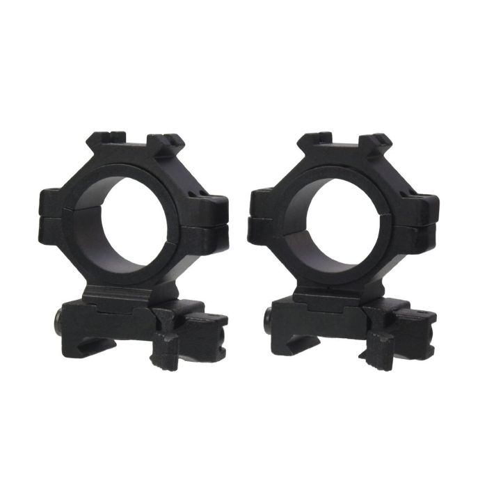 Lensolux richtkijker montage met Quick Release systeem, geschikt voor alle soorten lucht, sport en tactische geweren met weaver / picatinny (21,5 mm) rail. De producten zijn vervaardigd met behulp van de nieuwste CNC-machines beschikbaar, waarna elk onderdeel, voorafgaand aan de eindmontage met de hand wordt gecontroleerd. Dit zorgt ervoor dat de Lensolux montages een juiste uitlijning bieden met een solide en betrouwbare grip op je geweer en zo de nauwkeurigheid van uw richtkijker zal optimaliseren. Door het gebruik van de meegeleverde inserts is de Lensolux QR montage geschikt voor richtkijkers met een buisdiameter van 25,4 en 30 millimeter.