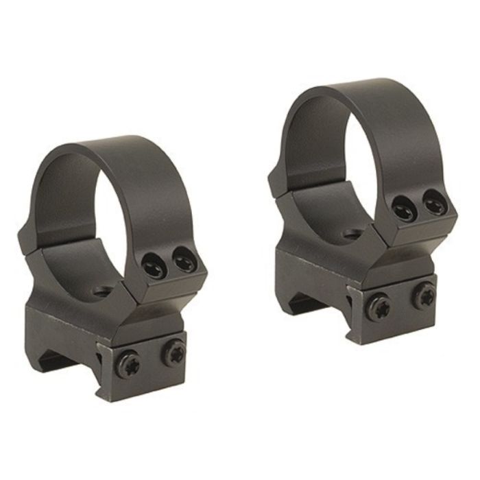 Leupold PRW2 30 millimeter montage-ringen, hoog. Volledig vervaardigt uit staal en mat-zwart gepoedercoat. Aan de onderkant van de ringen bevindt zich een rechthoekig roestvrij stalen blok die precies in de uitsparing van de Weaver rail past. De grote sluitkracht van de twee Torx-schroeven per zijde zorgen voor onwrikbare grip. Hoge herhaalbaarheid bij het opnieuw monteren. Levering is inclusief de benodigde Torx sleutel.