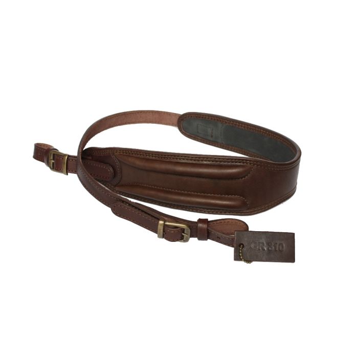 Luxe geweerriem van soepel rundleder met versterkt schoudergedeelte en een binnenzijde van neopreen voor het comfortabel dragen van een hagel- of kogelgeweer