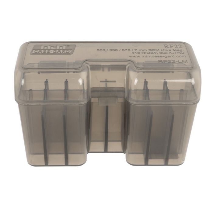 MTM Ammobox Case Gard RF22-LM-41 Smoke. De bekende MTM munitiedozen RF-Series zijn gemaakt van duurzaam polypropyleen kunststof. Ideaal voor het opslaan van herladen en fabrieks-munitie. Ze hebben een goede grip door de gestructureerde oppervlak en zijn stapelbaar.