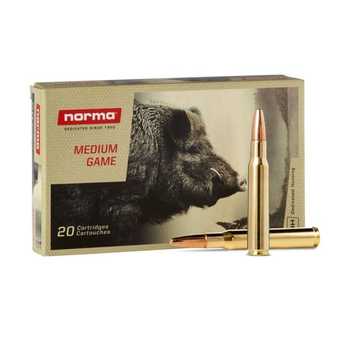 Norma, kaliber .30-06 Springfield met een 180 Grains Soft Point Vulkan kogel-kop. Zeer geschikt voor de jacht op middelzwaar wild, zoals de vos, ree en zwartwild. De bekende jacht kogelpatronen van Norma zijn nauwkeurig, accuraat en van een zeer hoge kwaliteit. Een succesvolle jacht heeft zelden te maken met geluk. De jager moet kunnen rekenen op zijn munitie en de kogel om zijn werk te doen. Veilig en doeltreffend, ongeacht op wat of waar gejaagd wordt. Norma weet wat belangrijk is wanneer de zaken serieus worden en laten niets aan het toeval over. Bij Norma houdt men continu rekening met de vereisten van de jager en verschillende jachtomstandigheden bij de keuze van superieure componenten en het ontwerpen en vervaardigen van hun munitie. Norma vervaardigt munitie met een grote keuze in verschillende kalibers en gewichten in kogelkoppen waar de jager overal en altijd op kan rekenen!