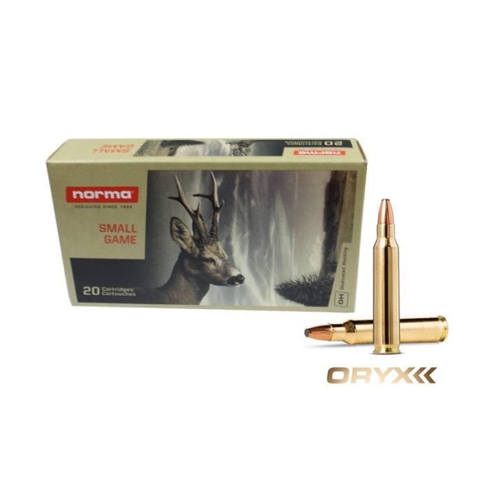 Norma Oryx kaliber .223 Remington. Oryx staat voor een hoge nauwkeurigheid, goede deformatie en een hoog restgewicht. Dit gebonden ontwerp past bij de allround jager die de keuze van een patroon voor de jacht wil vereenvoudigen. Dankzij zijn uitstekende prestaties is Oryx in een paar jaar tijd de meest populaire van de Norma-kogels geworden.