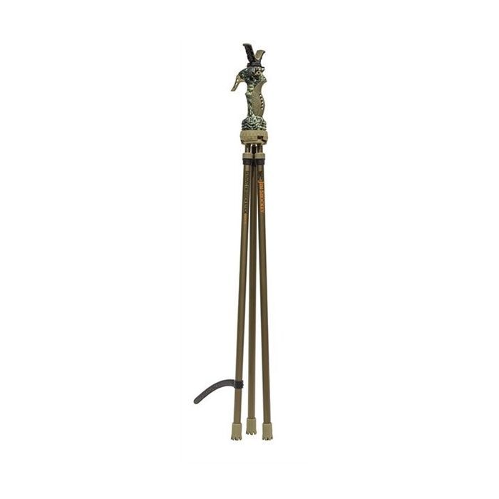 De vernieuwde Primos Trigger Stick Generatie 3 Jim Shokey Edition kenmerken zich door de mooie en stevige bronskleurige poten en de volledig vernieuwde kop, met een verder verbeterd draaimechanisme en hoekvergrendeling voor de poten. Tevens is de V-steun vernieuwd, deze is nu voorzien van een geïntegreerde Lock-functie en een snelkoppeling, waardoor hij met een druk op de knop te verwijderen is en vervangen kan worden door een snelwisselplaat met camera-aansluiting of waarop de Primos 2-Point Gun Rest geplaatst kan worden. Verstevigde handgreep met anti-slip grip - Versterkt roterend gewricht voor soepele en stille draaiing van de kop - Extreme Hoek Verstelling om zowel zittend als staand te kunnen schieten - Lock functie voor de 3 poten voor meer stabiliteit in het veld. - verwijderbare V-Steun via snelkoppeling - Snelwisselplaat voor camera’s en 2-Point Gun Rest (art.nr. 1865808) standaard meegeleverd bij 3-poot - Lichtgewicht om makkelijk mee te kunnen nemen