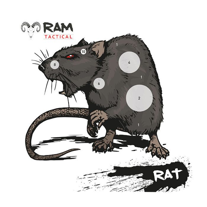 Ramtargets RAT schietkaarten 14x14 cm. De RAM Targets RAT schietkaarten zijn geschikt voor de metalen schietkastjes en houders met een afmeting van 14x14cm. De RAMRAT schietkaarten worden geleverd in een pakje van 50 stuks. De schietkaarten zijn gemaakt van een stevig papier/karton.