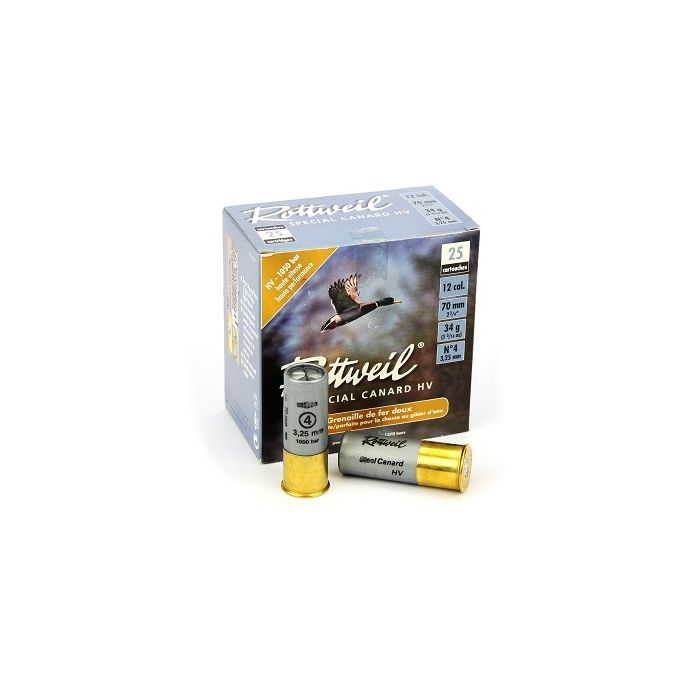 De Rottweil jacht hagelpatroon Special Canard HV is een high performance patroon met 34 gram soft steel hagel voortgestuwd met hoge snelheid van 390 m/s. Ontwikkeld voor de eenden jacht maar ook zeer geschikt voor fazant en haas. Rottweil munitie, een begrip onder vele jagers vanwege hun snelheid, constante kwaliteit en hoge dekkingsgraad op lange afstanden. Alleen geschikt voor hagelgeweren die zijn getest voor staalhagel.