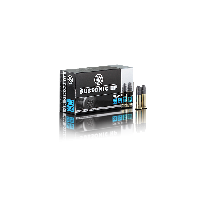 RWS Subsonic HP.22 LR. Voor de jacht en sportschieten. De RWS SUBSONIC HP is een speciale patroon voor een stille schot. De kogel snelheid is aanzienlijk lager dan de geluidsbarrière en geeft daarom een minder luide knal. Daarom is deze randvuurpatroon van RWS bijzonder goed geschikt voor gebruik op de jacht en schietsport. Het biedt vergelijkbare goede schiet prestaties als een standaard patroon, maar is veel rustiger. Door de holle punt geeft dit een betrouwbaar shock-effect op klein wild en ongedierte. Deze munitie is niet geschikt voor semi-automatische wapens