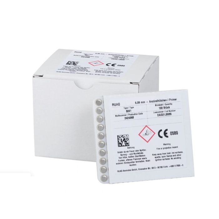 Slaghoedjes Large Rifle van RWS - Ruag. Boxerprimer large rifle voor geweerpatronen, diameter 5,33 mm. 1000 stuks per verpakking.