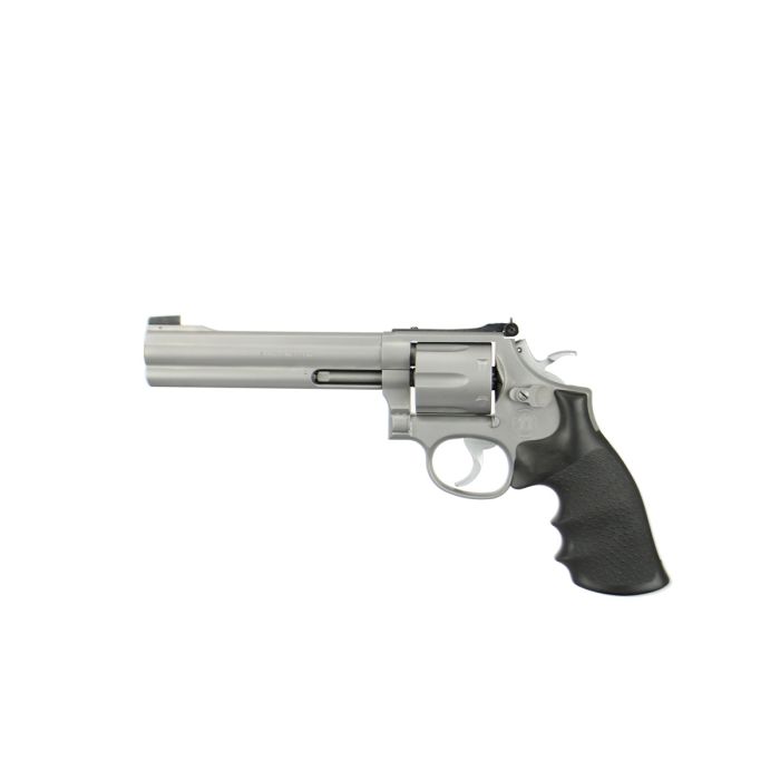 Smith&Wesson 686-3, kaliber.357 Magnum/.38 Special. Gebruikte roestvrijstalen Smith&Wesson type 686 met 6 inch loop in geparelde uitvoering. Zeer nette revolver met verstelbaar vizier en Hogue rubber finger grooved handgreep. Zeer nette revolver.