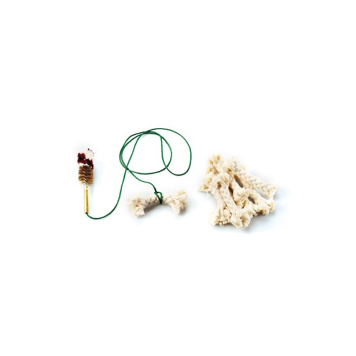 Trekkoord schoonmaakset met een wol/brons borstel. Met deze set maakt u in één beweging uw loop volledig schoon.