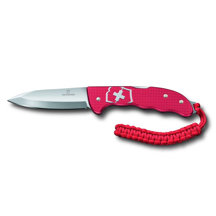Victorinox Hunter Pro Alox Rood jachtmes, #0.9415.20. De Victorinox Hunter Pro is een prachtig en sterk zakmes, geschikt voor vele doeleinden. De Hunter Pro is speciaal ontwikkeld voor jagers die graag een jachtmes zonder extra tools op zak willen hebben. Het lemmet is groot, scherp en ongelooflijk sterk. Dit grote zakmes heeft een forse handgreep geheel gemaakt van geribbeld aluminium. Het Victorinox logo is op zeer fraaie wijze in de handgreep aangebracht. De Hunter Pro Alox Rood wordt geleverd met een lanyard en een afneembare broekclip. Het lemmet wordt vergrendeld door middel van een backlock vergrendeling. Hierdoor kan het zakmes niet ongewild inklappen tijdens gebruik. De Hunter Pro Rood is voor zowel links- als rechtshandige gebruikers geschikt.